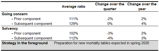 The reduction in the financial position over the last quarter of 2025 was due to slightly lower-than-expected investment returns. On a solvency basis, changes in prescribed interest rates also had a negative impact on the quarter’s results.